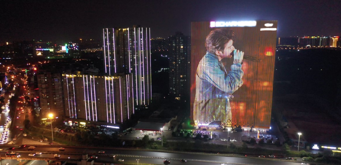 長沙開福萬達樓體燈光秀廣告
