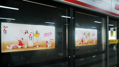 | 位置:主要分布于每個站點的站廳、通道、軌行區,是地鐵廣告中最常見的一種形式,覆蓋全站客流。 效果:色彩鮮艷,畫面明亮,視覺沖擊力強,面對受眾近距離展示,接觸時間長,閱讀時間充分,迫視性強;封閉式環境,干擾性小,廣告接受度高。 |