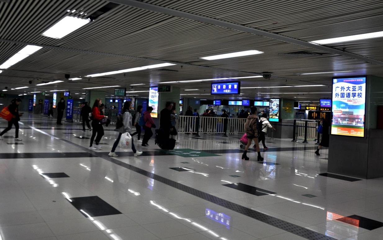 禁區內排隊出入境的通道上,深港跨境口岸媒體,重要提示,吸引消費者蘭注