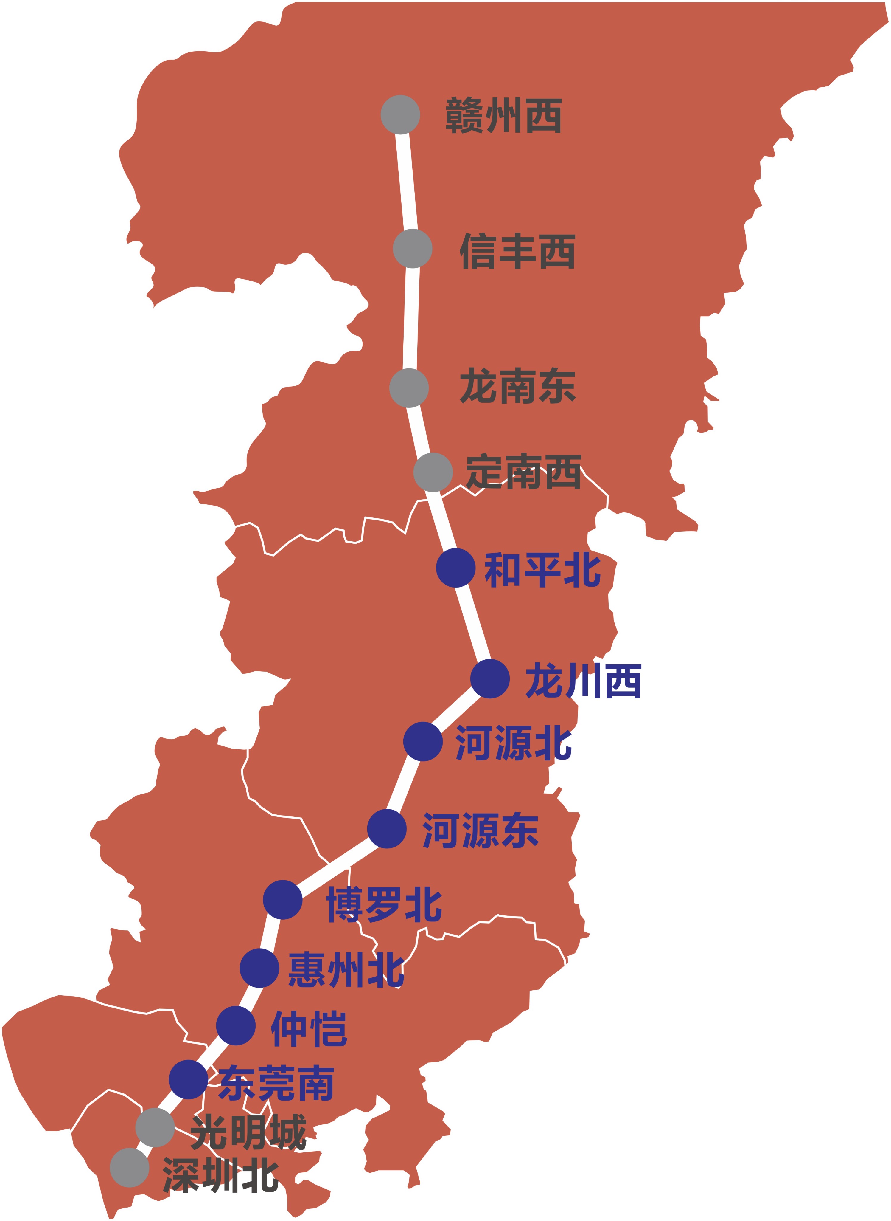 其中江西段4個:贛州西站、信豐西站、龍南東站、定南;