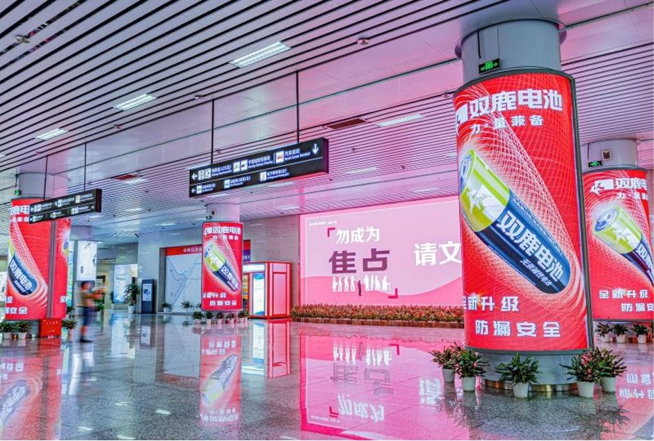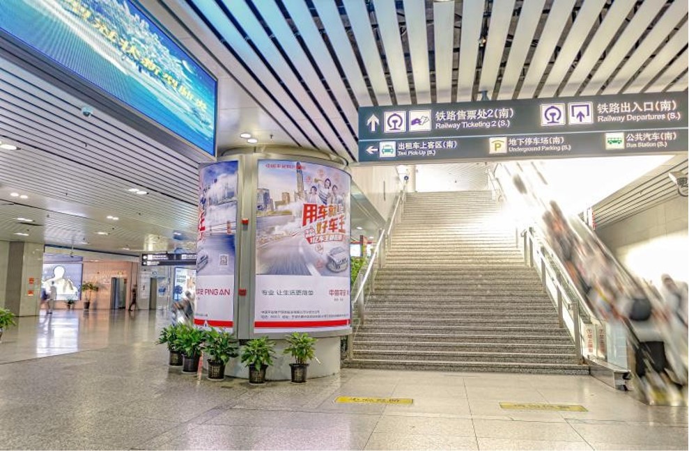 寧波高鐵站燈箱廣告-北廣場2號地鐵口高鐵出口通道圓柱燈箱廣告