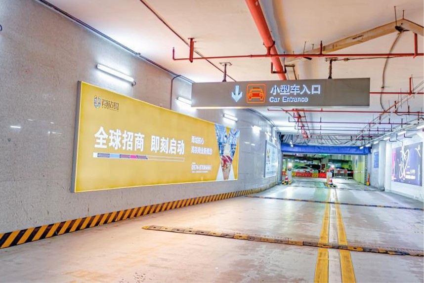 寧波高鐵站燈箱廣告-停車場進出口墻體燈箱廣告
