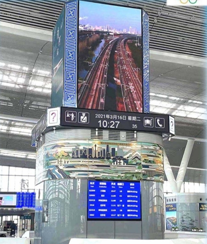 北京清河站led廣告-候車室-中央服務臺led四面屏廣告