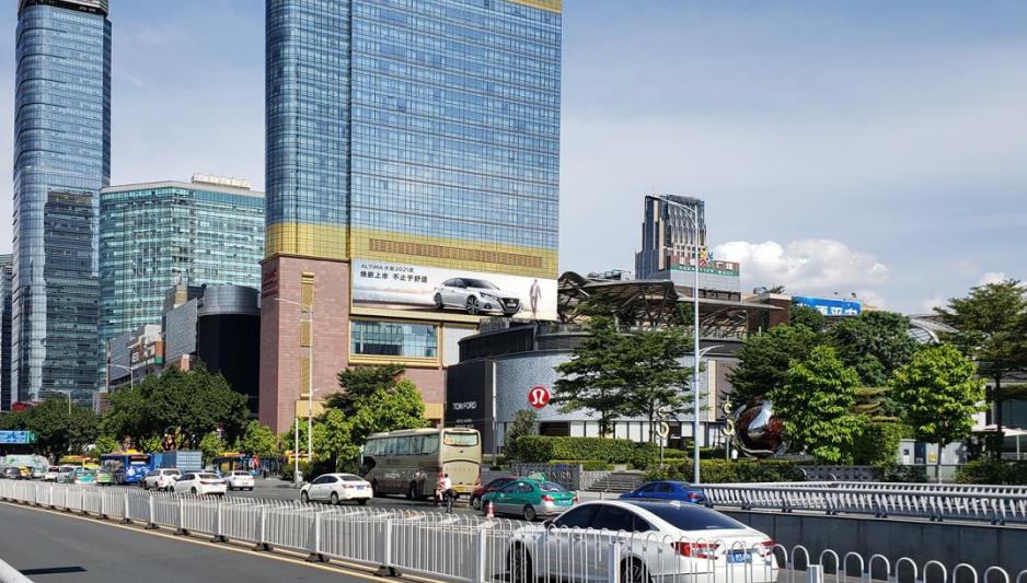 萬豪酒店正門墻體,正佳大街,BRT與地鐵線交匯于此,路段人車流巨大,上下班高峰期更是擁堵。