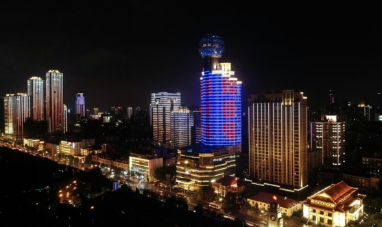 武漢龜山電視塔塔身燈光秀廣告