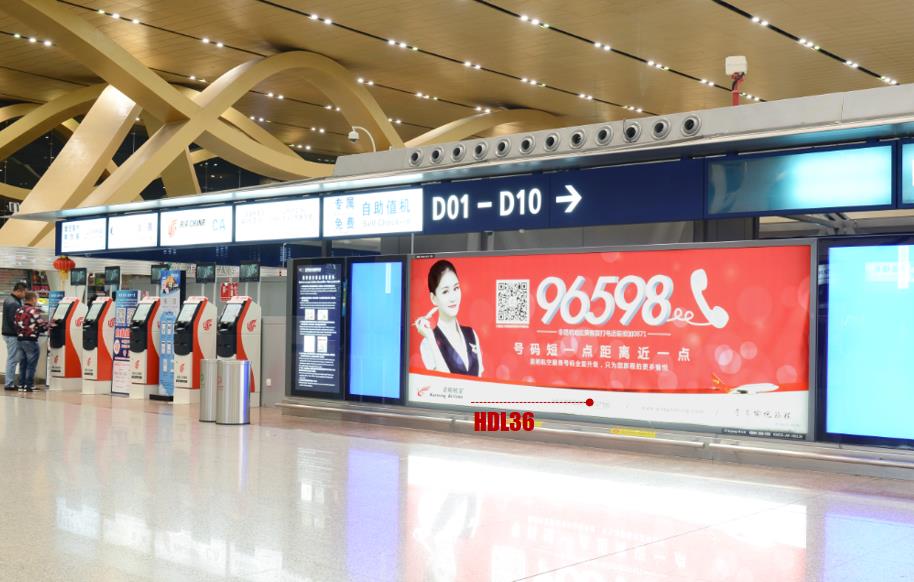 F3層國內(nèi)/國際出發(fā)航司值機島開包間燈箱廣告
