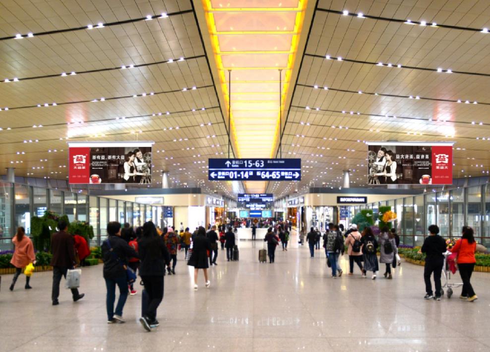F2層國內(nèi)到達東、西指廊墻面燈箱廣告