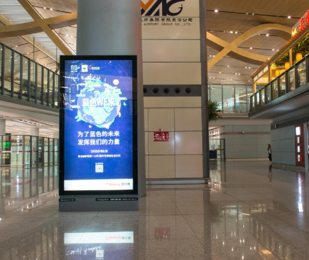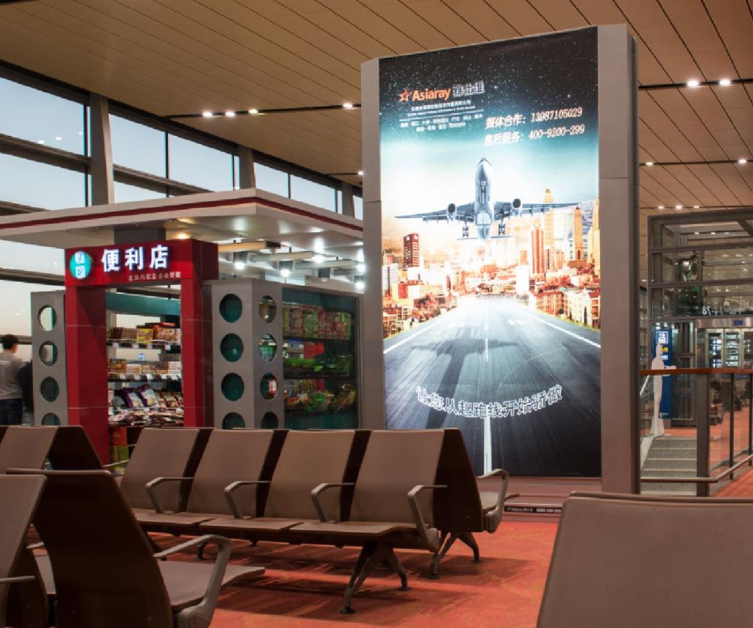 F2層國內(nèi)出發(fā)西指廊候機區(qū)巨型站立式燈箱廣告