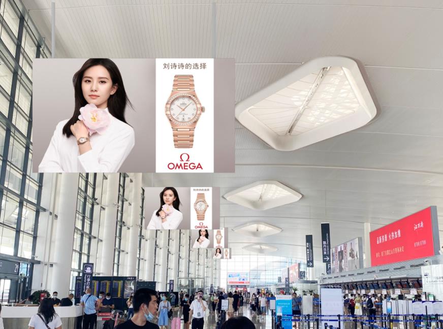 媒體位置:T2國內出發候機區 安檢后左右側通廊玻璃幕墻