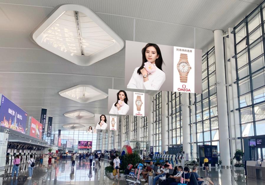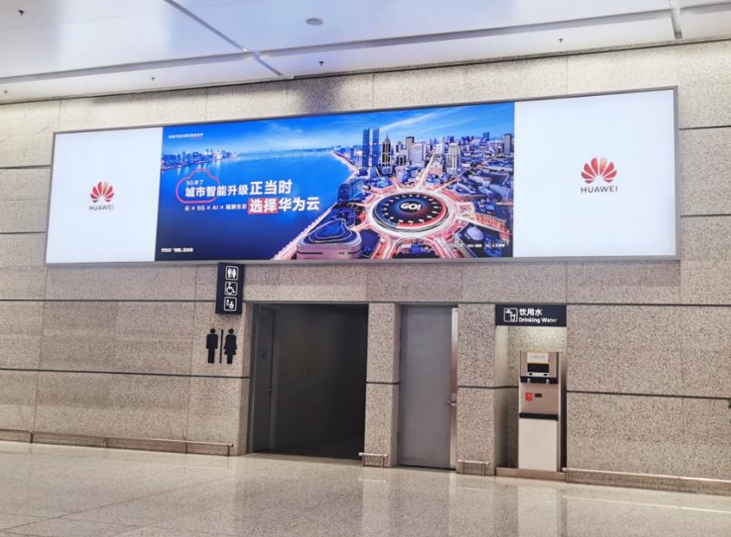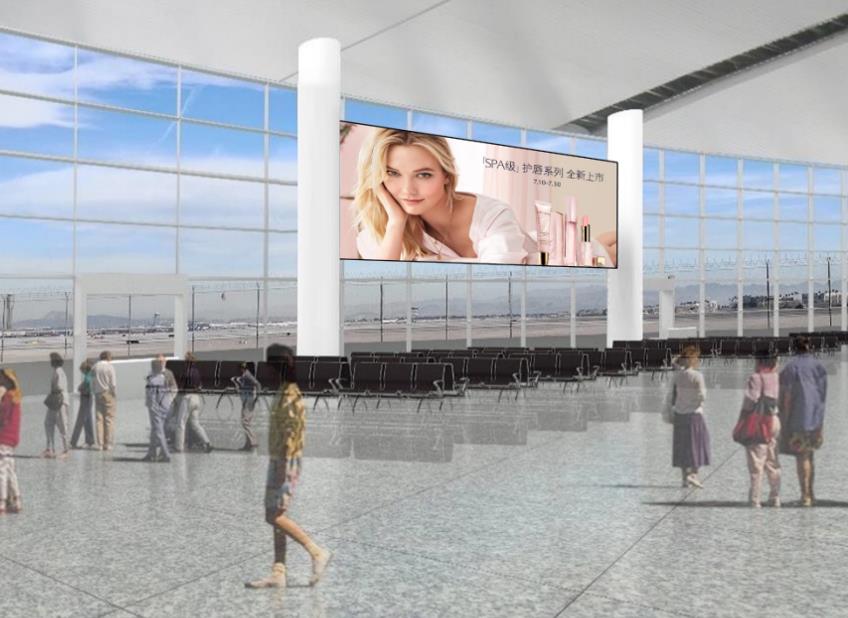 T2國內出發安檢通道右側墻體上方led大屏廣告