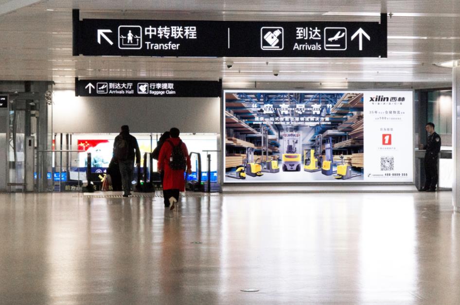 T2國際行李提取廳出口外門廊上方燈箱廣告