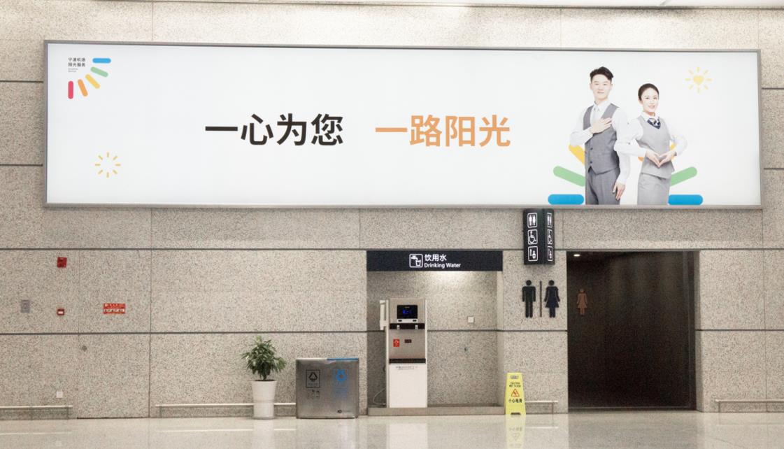 T2國際到達主通廊聯檢區域墻體燈箱廣告