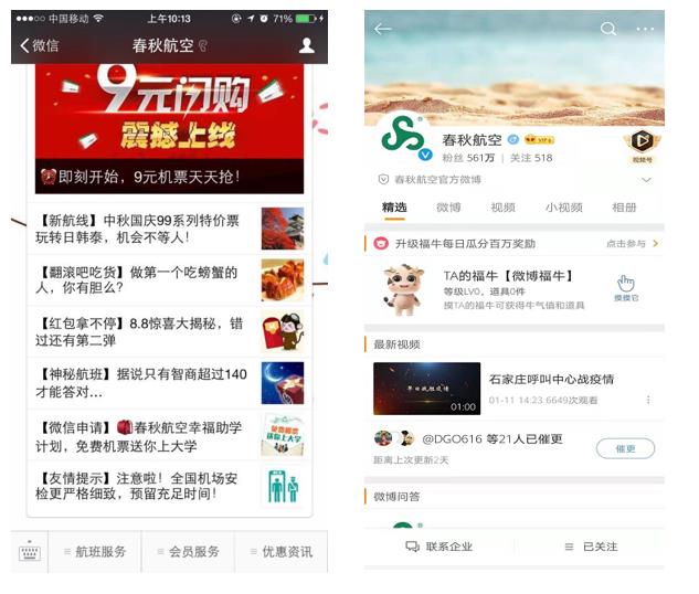 春秋航空航前/后資源——多種社交平臺(tái)推廣,讓春秋粉絲直面了解品牌