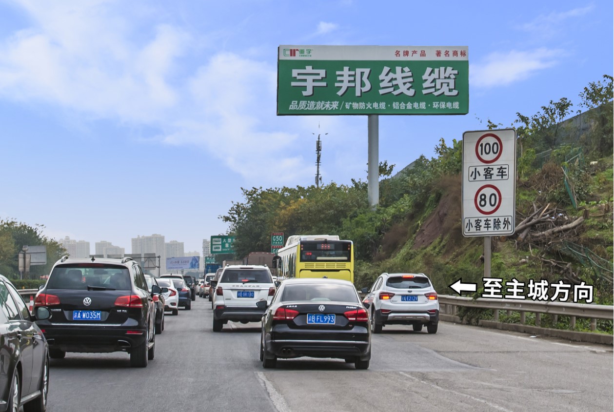 主城東環區域前往機場T3航站樓的必經要道。 同時是渝宜高速公路的一段,是重慶主城通往長壽,涪陵,萬州等長江下游的高速干道。車流量極大,視野開闊,周邊無其他媒體干擾,廣告發布效果明顯。
