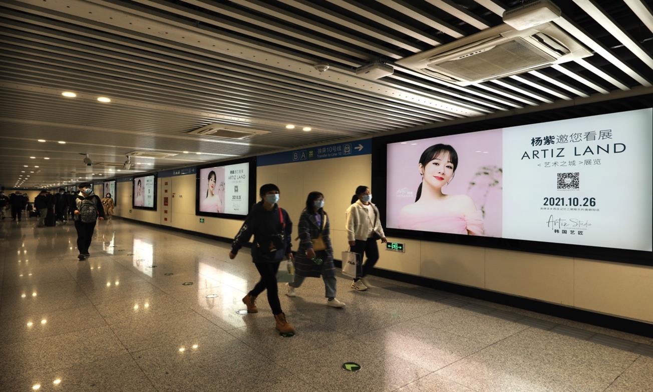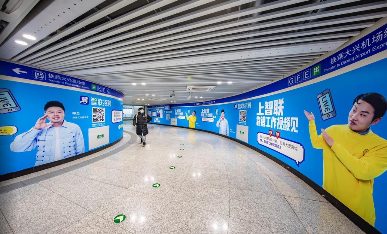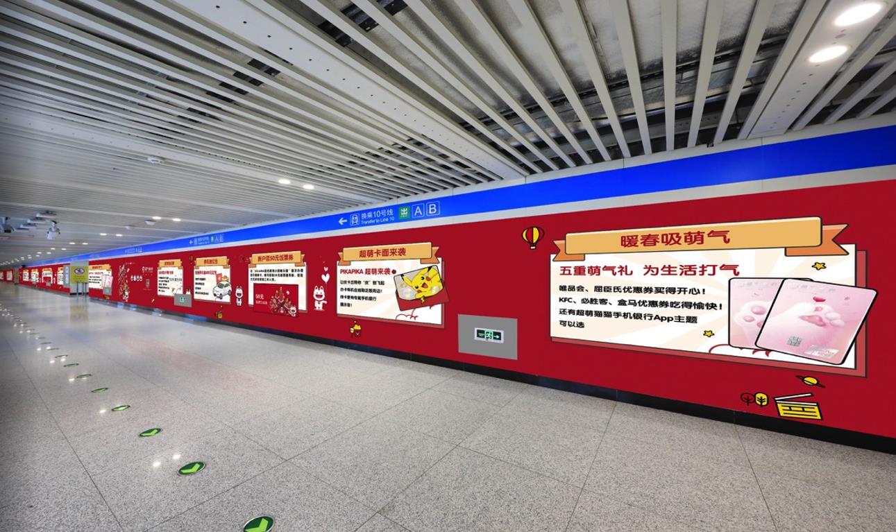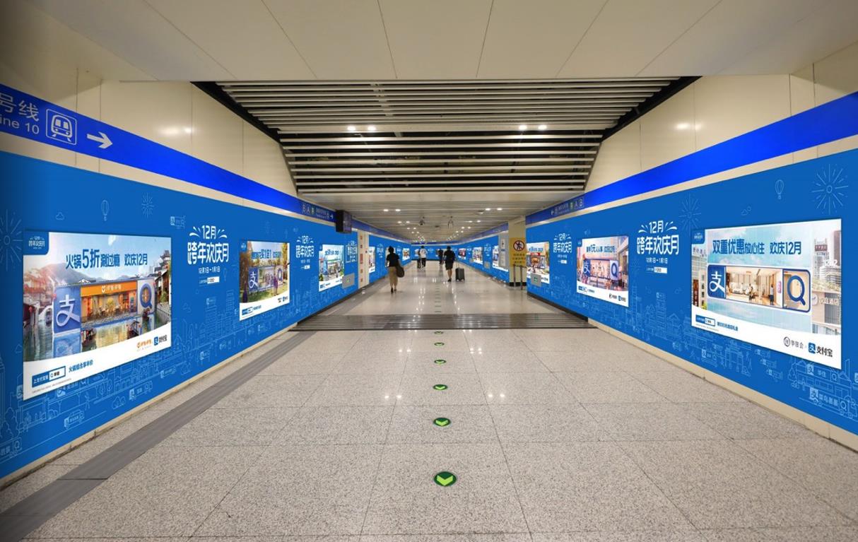 通道內客流密集,超大幅面墻貼畫面伴隨乘客一路前行,廣告觸達時間長,有效保證品牌傳播