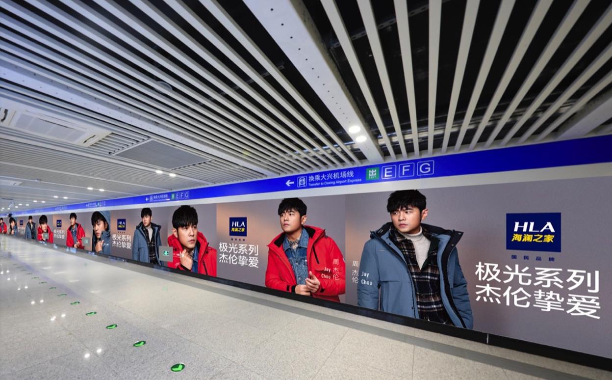 通道狹長,超大墻貼超長面積發布,使得廣告具有超長觸達時間,為品牌傳播提供有力保障