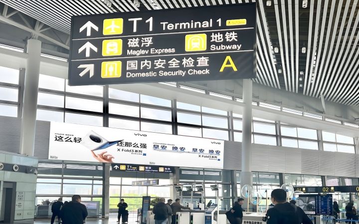 可同時覆蓋 100%磁浮地鐵入機場旅客。單塊媒體尺寸規格大,架設位置高,視野穿透力強。
