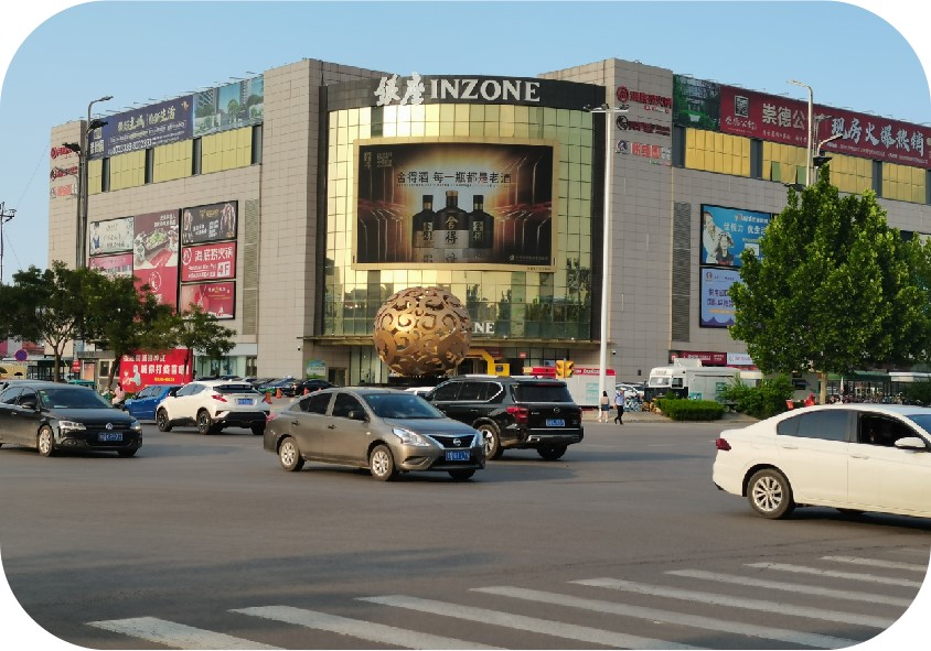 而且自動(dòng)亮度調(diào)節(jié)功能保證了廣告屏在各種天氣都有很好的顯示效果。位于道路十字路口,繁華商圈車(chē)流人流繁忙。