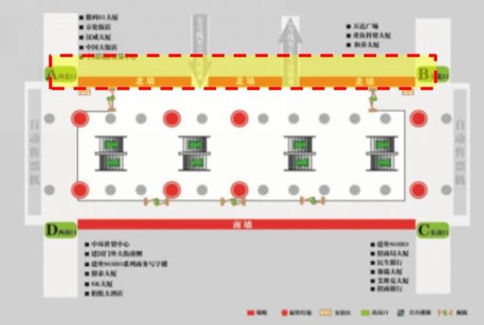 2、站廳西北側A出口:中國大飯店、中國國際貿易中心、國貿商城、國貿飯店、國貿公寓、中海廣場寫字樓