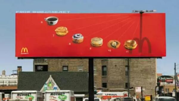 麥當(dāng)勞是芝加哥的快餐一哥,在麥當(dāng)勞打出的廣告里,最讓人有深刻印象的就是一個(gè)個(gè)性十足的大型時(shí)鐘廣告牌“日晷”,麥當(dāng)勞在街道的一屋頂上設(shè)計(jì)了一個(gè)大型的時(shí)鐘,在12個(gè)小時(shí)刻鐘上分別放置了代表每一個(gè)時(shí)間點(diǎn)的麥當(dāng)勞典型快餐,這樣的圖案效果,讓人在每一個(gè)時(shí)間都能想到麥當(dāng)勞,廣告的宣傳效果非常突出。