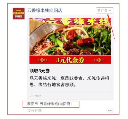 朋友圈圖文廣告由五或六個部分的內容構成,包含廣告主頭像&名稱、外層文案、外層圖片、文字鏈、用戶社交互動等, 本地推廣圖文廣告還包括門店標。