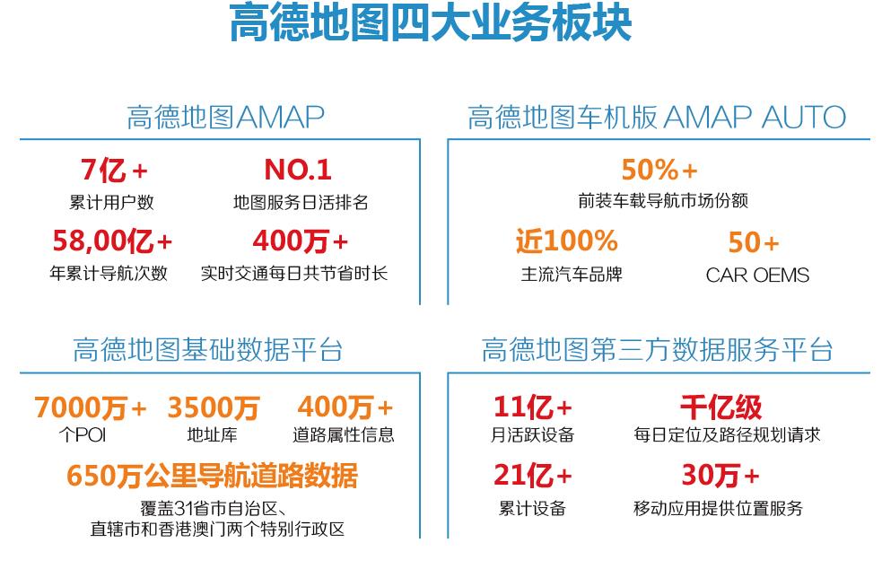 高德地圖是中國領先的數字地圖內容、導航和位置服務解決方案提供商。擁有導航電子地圖甲級測繪資質、測繪航空攝影甲級資質和互聯網地圖服務甲級測繪資質,其優質的電子地圖數據庫成為公司的核心競爭力。