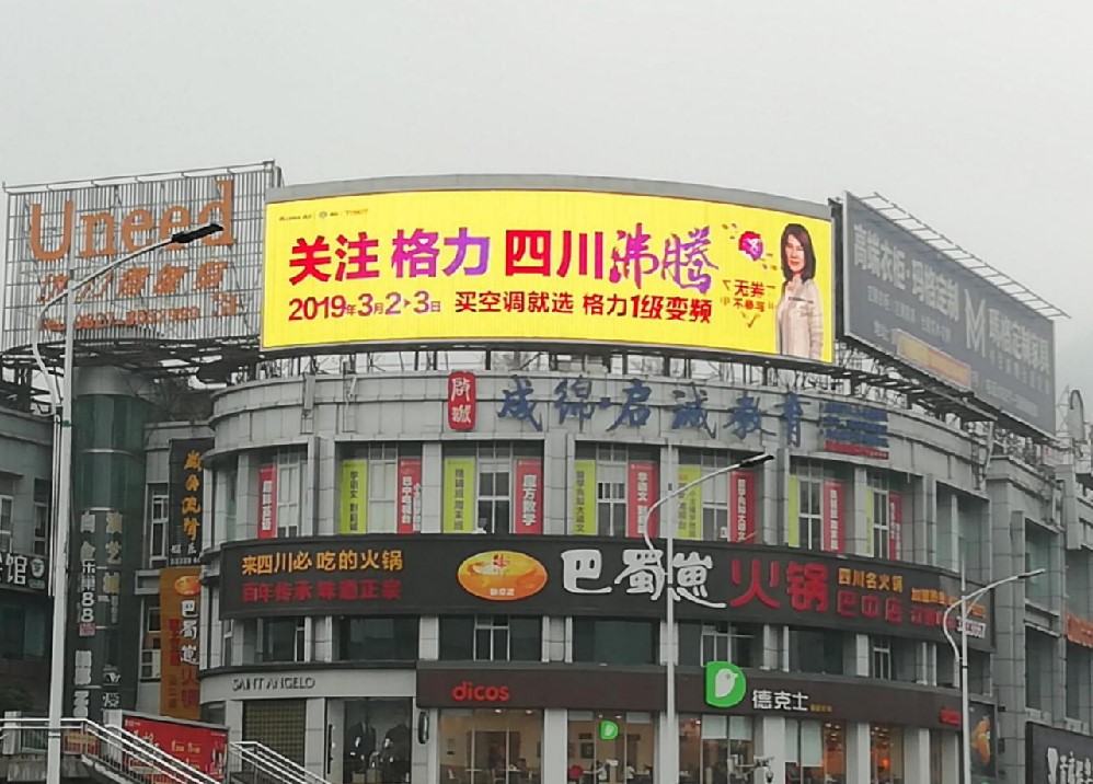 媒體價值:該屏體傲立于巴中核心商業區三號橋頭,面積達160平米,呈圓弧形,是目前川東北地區最大的一塊戶外顯示屏,屬于巴中地標性廣告位;
