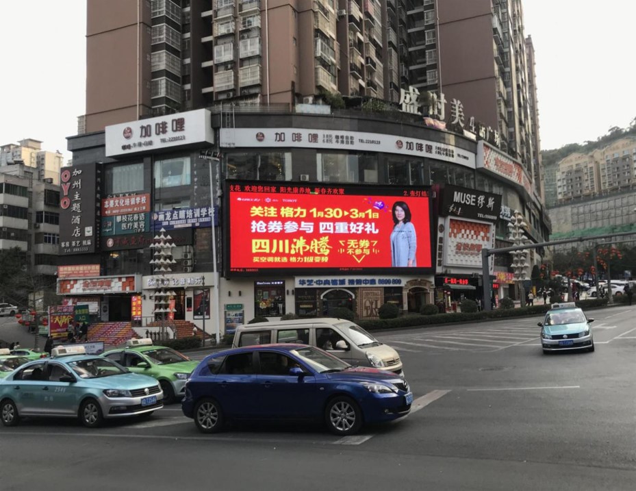 媒體價值:該屏體位攀枝花加州國際機場路口,本屏可視距離遠,色彩艷麗,位于十字路口,人車流量巨大。