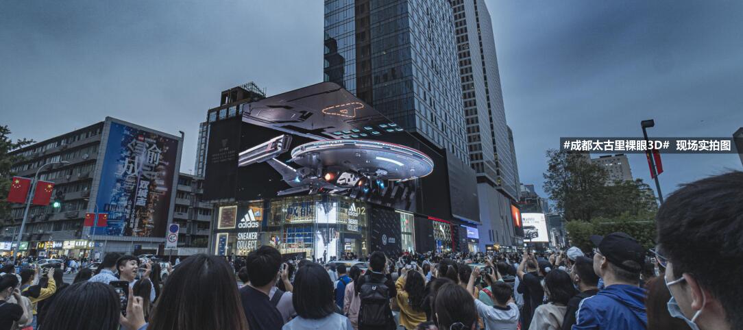 裸眼3d秀成為新一代網紅打卡圣地,在城市形象提升上做出了極大的貢獻。繼 #成都太古里街拍# 火遍全球后,#成都太古里裸眼3D# 接力成為新晉城市標簽,成為全球焦點。在極短時間內,引發國內外各大社交媒體,網絡平臺的熱烈討論與極高關注度。