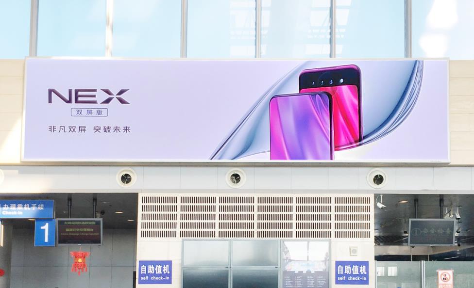 T2航站樓值機柜臺和安檢口上方led大屏廣告