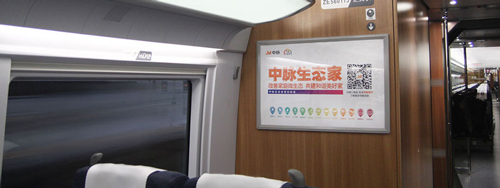 海報:位于所有高鐵車廂內(nèi)進門處等顯要位置,覆蓋全部高鐵旅客。