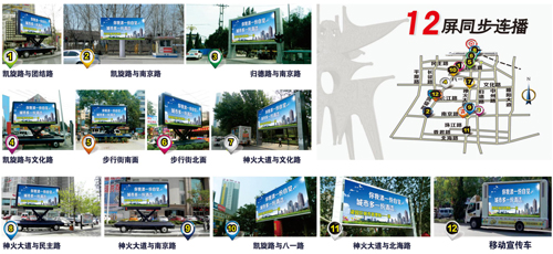 商丘戶外led電子屏點位介紹-12屏同步聯播