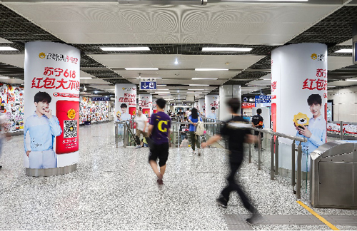 組合形式 :超級(jí)墻貼75㎡+13根站廳包柱+8塊6封站廳燈箱+玻璃貼(不少于20塊)