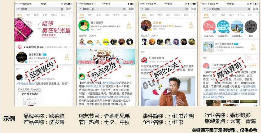 優(yōu)勢:發(fā)現(xiàn)頁面的默認(rèn)搜索詞匯,現(xiàn)在有越來越多的人上微博只為了看熱門內(nèi)容,比較容易引起用戶的興趣,不會(huì)搜索框內(nèi)其實(shí)是廣告,不容易引發(fā)用戶的反感,畢竟好多平臺(tái)搜索框內(nèi)都有文字提示。