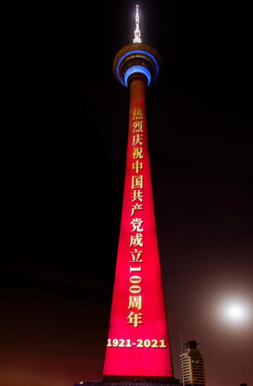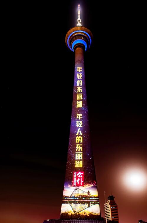 3月29日晚上,“區域發展耀天塔”——東麗區專題燈光秀正式燈點亮天塔5000平方米塔身,燈光璀璨,綻放初春最美光彩。東麗湖以閃亮青春的姿態和面貌展現在市民面前,為中國共產黨建黨100周年獻禮。