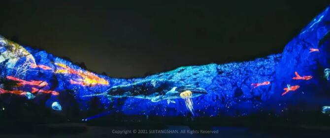 南京湯山礦坑崖壁光雕實景燈光秀!11000㎡的大型山體投影,直觀全面地還原大地之美!