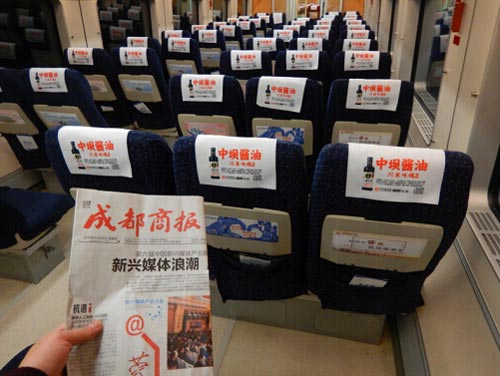 本次中壩醬油“搭乘”成渝線、成綿樂、成達專線高鐵,以成都為中心,覆蓋了重慶、資陽、內江、永川、廣漢、德陽、綿陽、江油、眉山、樂山、峨眉山、樂至、遂寧、達州等城市,一段文化、一個故事、一個品牌陪你度過旅途的寂寥。